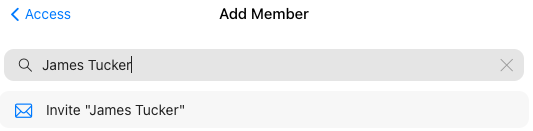 Um ein neues Mitglied von der Homepage hinzuzufügen, klicken Sie auf den Namen des Ordners, dann auf "Zugriff" im linken Fensterbereich, dann auf "Mitglied hinzufügen" und geben dann den Benutzernamen oder die E-Mail-Adresse ein.